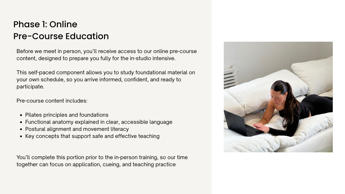 You’ll develop a deep understanding of how the body moves, how to teach with clarity, and how to design classes that are safe, functional, and adaptable.
